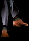 Blending two of nature's finest noble fibers, Cashmere and New Zealand Merino, this solid rib style is buttery soft, yet also extremely durable. While luxuriously soft and warm, it is knit in a fine 240 needle count for a comfortably light and breathable fabric. The color-block adds a chic pop of color which slightly peeks out the top-front of your shoe for an artful accent to the classic black sock.