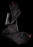 Leveraging a vanisé (double-face) knitting technique to its full effect, the MILKY WAY is notable for its mélange color combinations. With the entire inside layer lined with a bright colored 100% silk, and the outside layer made of a black 100% Merino wool, the fusion of the two create a rich marbled color effect and a silky-soft finish. The combination of the rakish dot pattern and fine 240 needle fabric, make this style the ideal intersection of formal and informal.